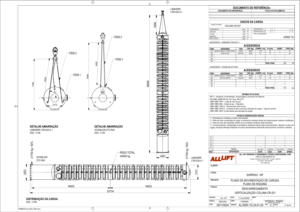 · Supervisão técnica dos içamentos, com foco em segurança, conformidade normativa e eficiência operacional;