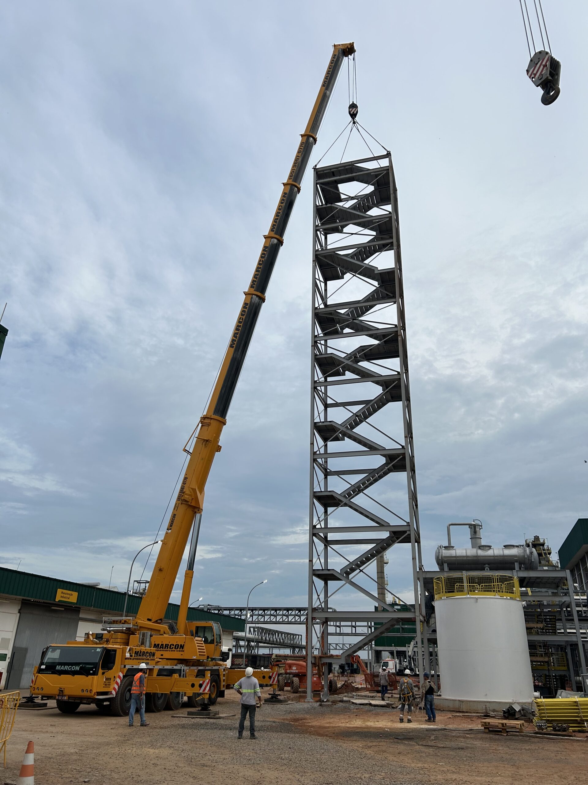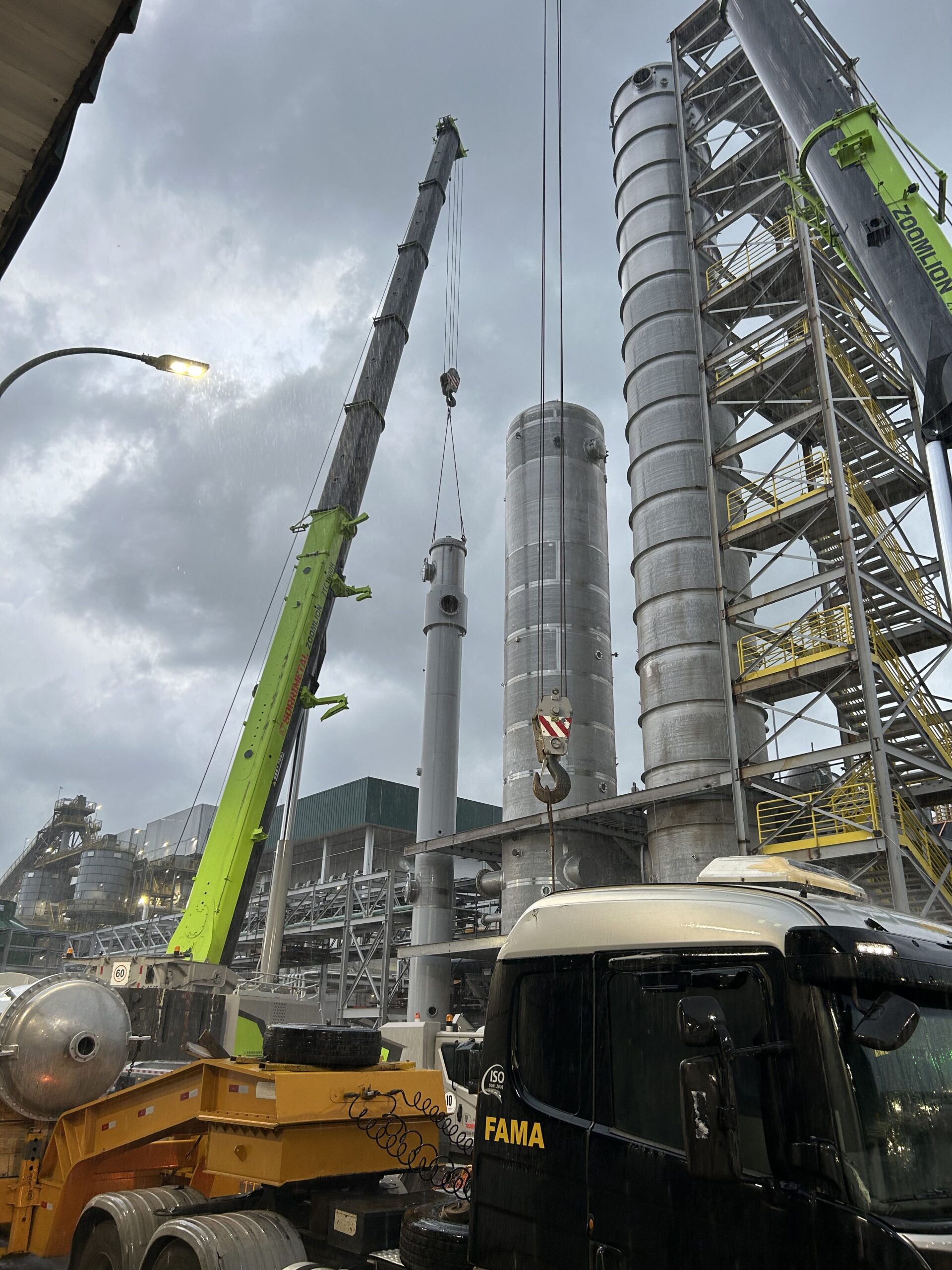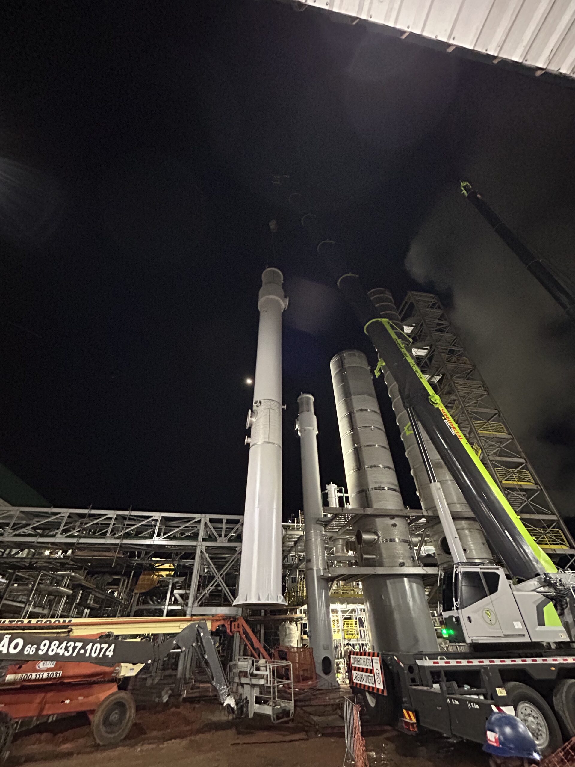 Escopo: Ampliação da destilaria com içamento de colunas e torres